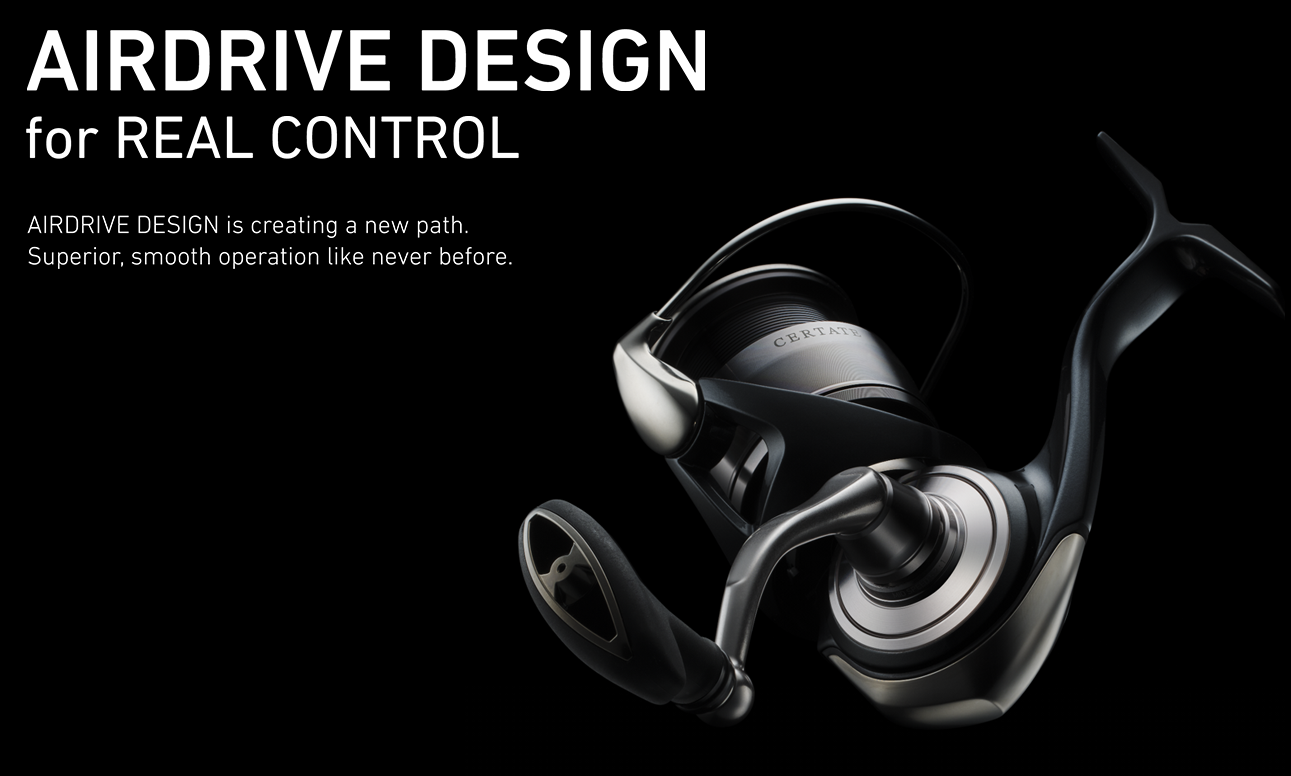The “AIRDRIVE DESIGN” next generation spinning reel concept in the NEW CERTATE continues the pursuit of superior operability. It is a design concept that aims to allow anglers to control the lures as they wish, and is composed of up to four technologies. The benefits of a reel equipped with AIRDRIVE DESIGN are too great to be ignored. Lightweight operability resulting from optimal weight balance translates to improved rotation that allows anglers to feel a sense of exceptional control with their tackle. Winding sensitivity that allows anglers to feel even the slightest fish bite or change in current.