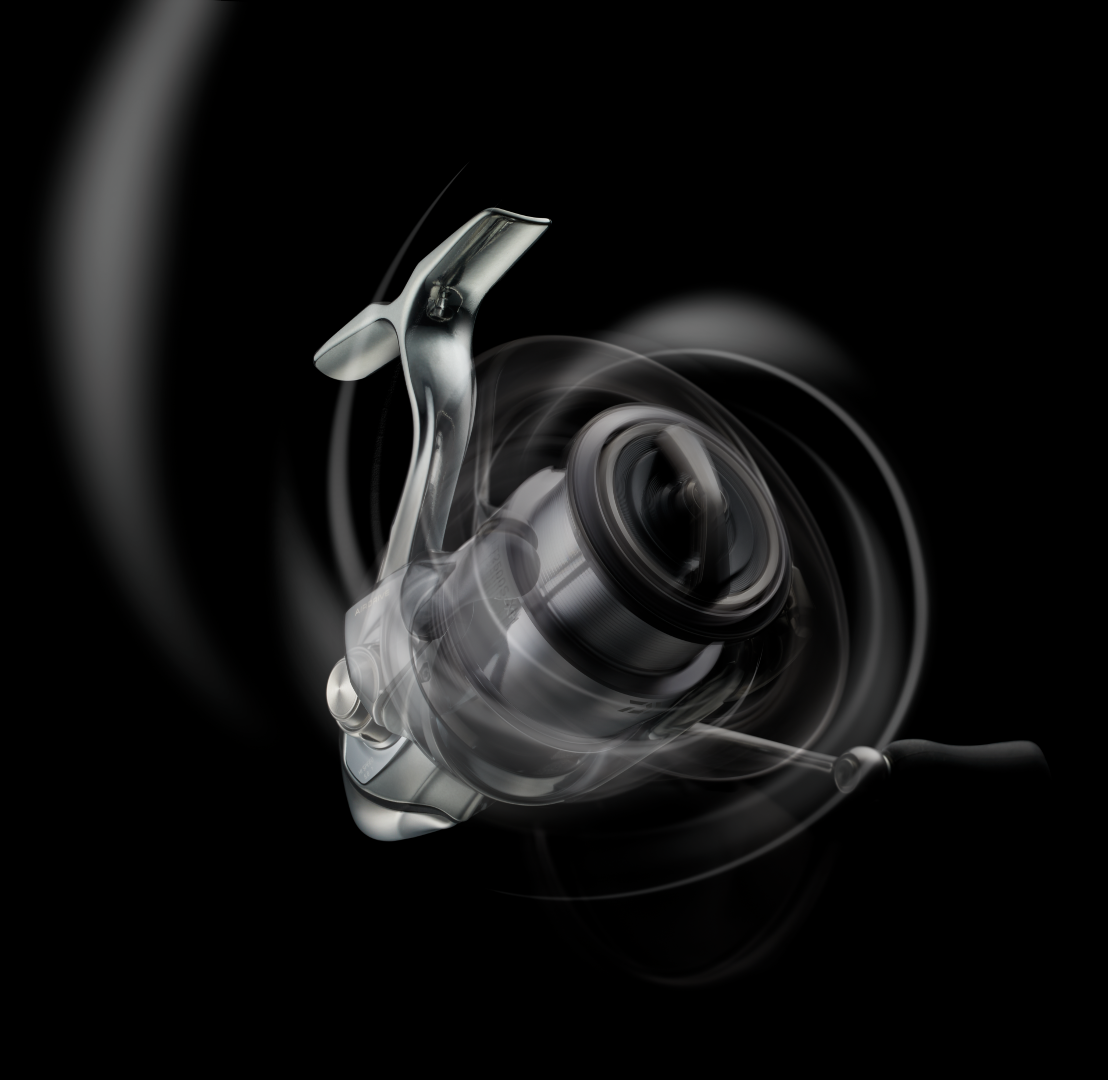 By reducing the weight of rotor, spool & bail assembly, a lighter rotation is achieved.