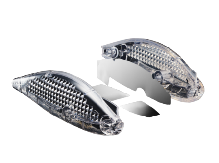The lure's body is polished to a mirror-like finish using extremely detailed finishing processes not normally used in lure molds, and hundreds of pyramidal polyhedrons are placed inside the body, with a mirror-like reflector built into the body. This 3D multi-reflection structure, which simultaneously performs both retroreflection and specular reflection, has resulted in a lure that emits an unprecedented amount of intense reflected light over a wide area.