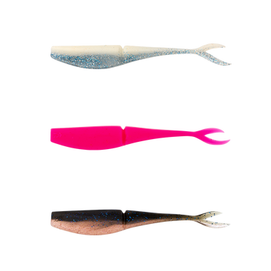 One of the more difficult bait styles from which to stand out from the crowd. The BaitJunkie Jerkshads’ exhibit some of the most incredible swimming action ever witnessed from a ‘fluke’ style bait. The BaitJunkie ‘slim waist’ design principle is in full flight in the 5” Jerkshad, with the prominent waist section segmenting the bait into two separate parts. The vertical fluke tail exaggerates the action and the hinge-like effect of the body makes the tail section of the BaitJunkie 5” Jerkshad swim like no other. A belly slit enables weedless rigging with an EWG style weighted hook and.....Read More >